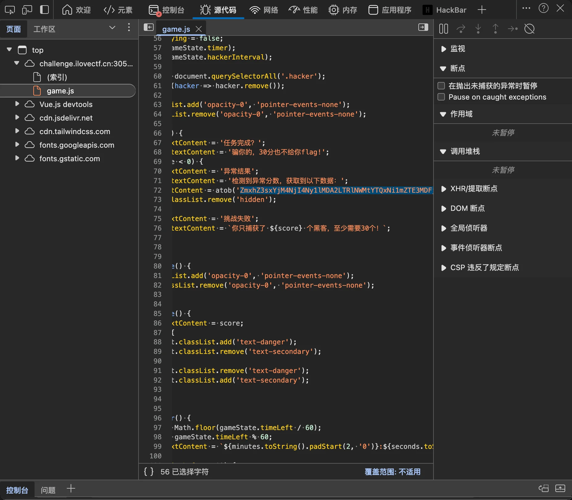 分析后发现第54行存在未使用的变量,print输出就是flag
